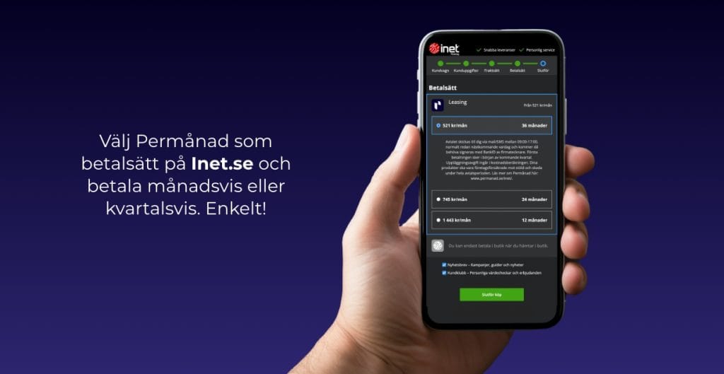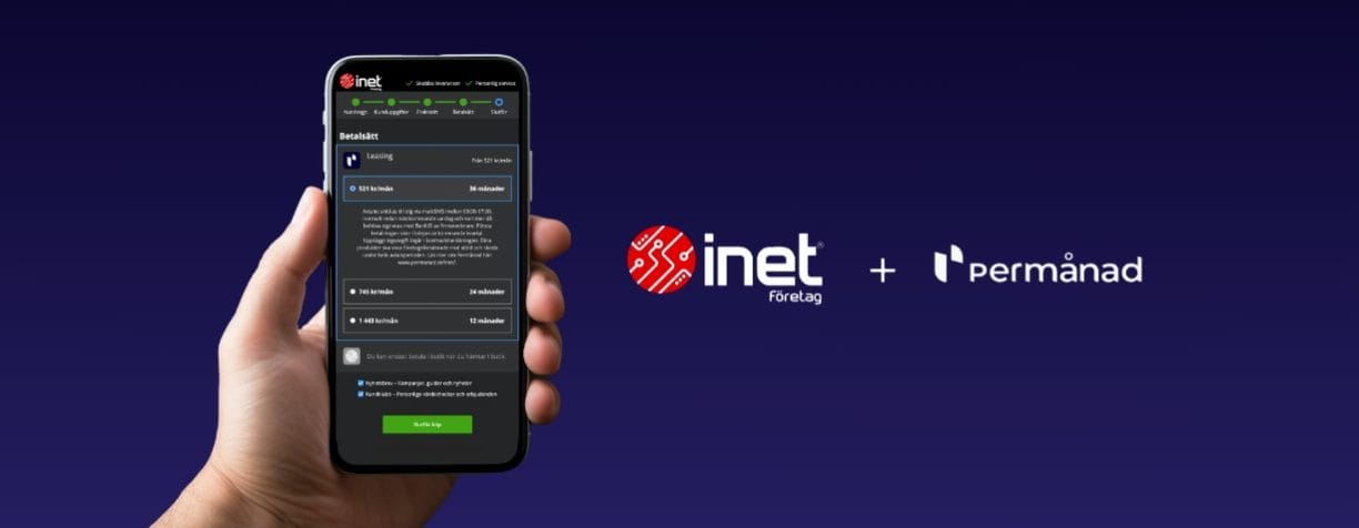 Permånad samarbetar med Inet om att ge företag rätt utrustning till bra månadspriser. När du handlar på Inet.se kan du enkelt välja Permånad som betalsätt så kommer alla dina prylar på samma månadsfaktura som din befintliga utrustning som du handlat på Permånad.se. Smidigt va? Det tycker vi också.